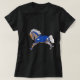 El noble caballo gris de manzana corre en una manta real azul con guarnición dorada. La manta está decorada con palomas blancas, símbolo de paz. El caballo lleva un casco de oro con un cuerno de unicornio encima. Ilustracion de lápiz de tinta y color.