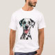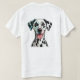 Dibujo animado dálmata ligero se para en un suelo rosa suave con una expresión alegre. Brillante, amigable y atractivo, funciona bien para libros infantiles, marca de mascotas, anuncios y campañas divertidas.
