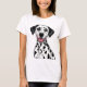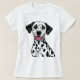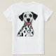 Dibujo animado dálmata ligero se para en un suelo rosa suave con una expresión alegre. Brillante, amigable y atractivo, funciona bien para libros infantiles, marca de mascotas, anuncios y campañas divertidas.