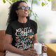 Para la gente que necesita una taza de café antes de la interacción social, está la camiseta "Café antes de hablar" de Pop Art. Con texto en crema resaltado con cian y rosa y rodeado de granos de café y una taza de café, ¡seguro que enviará el mensaje que necesitas dar!