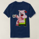 El color es muy bonito al natural, como la foto. El tejido es suave y de buena calidad. Sin defectos en el tintado, ni hilos sueltos o descosidos. Bien la impresión. Los bordes de las letras y el dibujo son nítidos, y el color contrasta muy bien con el de la camiseta.
