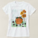 Cuidada calabaza de otoño acuarela Pintura con flores moradas.