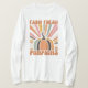 Este diseño de caída vibrante y retro destaca la frase "Calabazas frescas de granja" en tipografía audaz y juguetona que inmediatamente llama la atención. En el centro del diseño se encuentra una gran calabaza estilizada, con cálidos tonos otoñales de naranja, marrón y crema. La calabaza está enmarcada por una ráfaga dinámica de rayos de color que se extienden hacia el exterior, con una paleta de naranjas mutados, rosa, amarillo y verde que le dan un toque nostálgico y vintage al diseño. La combinación del patrón del arrebato de sol y el tipo de letra chunky y curvácea le da a la obra un ambiente divertido y enérgico, perfecto para capturar el espíritu festivo del otoño.