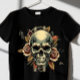 Un diseño audaz y electrificante del cráneo infundido con estética vintage y grunge. Esta obra de arte presenta efectos de brillo, colores vibrantes y texturas abstractas, lo que crea una vibración enérgica y rebelde. Perfecto para los amantes de la calavera temible alternativa