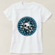 Calavera suave y huesos cruzados con arco rodeado de corazones y estrellas en tonos azules.