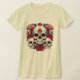 Esta camiseta presenta un impresionante cráneo y un diseño de rosas que te harán destacar entre la multitud. El cráneo blanco está adornado con rosas rojas en los ojivales y encima de la cabeza, lo que contrasta con el fondo negro. Los cráneos más pequeños en los lados añaden un toque de misterio e intriga. Esta camiseta es perfecta para todo aquel que ame el estilo gótico y oscuro.