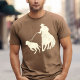 Camiseta de Cowboy Cowboy Coping. © Tees & Sweats at Zazzle. Un tee con un vaquero arrancando un becerro de su caballo.