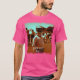 El color es muy bonito al natural, como la foto. El tejido es suave y de buena calidad. Sin defectos en el tintado, ni hilos sueltos o descosidos. Bien la impresión. Los bordes de las letras y el dibujo son nítidos, y el color contrasta muy bien con el de la camiseta.