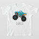Esta linda y moderna camiseta para niños presenta un personalizado de camión azul con ruedas de gran tamaño. También hay espacio en la camiseta para añadirle su propia personalización: un nombre en tipografía caprichosa. ¡El regalo perfecto para el transporte de niños o amantes del jeep!