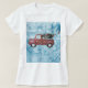 Camiseta camión de cosecha roja sobre fondo de copo de niev