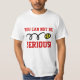 ¡Usted no puede ser serio! Camiseta divertida del tenis con cita en letras rojas. Ropa original para el jugador de tenis o el coche. Diseño adaptable y texto personalizable. Imagewear se especializa en ropa única del tenis y regalos chistosos para los hombres, las mujeres y los niños. Sorprenda la familia y a los amigos con un presente divertido del tenis o compre algo apenas para sí mismo. Es también posible crear los equipos frescos para su equipo o club entero del tenis. Visite por favor nuestra tienda para los mejores productos del tenis. ¡Véale en corte!