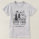 Crea una camiseta única personalizado para tu próximo viaje familiar de campamento o excursión al aire libre. Presenta la cita "campamento más, preocupación menos" en letras grises rústicas debajo del ilustracion dibujado a mano de una tienda de campaña enclavada en un bosque de pinos con una luna creciente sobre cumbres montañosas nevadas. La manera perfecta de conmemorar un viaje especial, o para cualquiera que le guste acampar, puede personalizar esta camiseta de camping con su elección de texto debajo del diseño. Añade tu destino de campamento, el año o un nombre familiar para un toque especial.