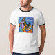 El color es muy bonito al natural, como la foto. El tejido es suave y de buena calidad. Sin defectos en el tintado, ni hilos sueltos o descosidos. Bien la impresión. Los bordes de las letras y el dibujo son nítidos, y el color contrasta muy bien con el de la camiseta.