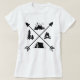 Un diseño fresco para los aventureros, con una montaña, una fogata, árboles y una tienda con dos flechas.