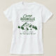 Camiseta blanca de la fiesta de soltería de camping moderna con un dibujo de un camping con montañas, árboles, una chimenea de leña, una tienda y una plantilla de texto que es fácil de personalizar.