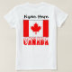 La camiseta femenina personalizada muestra la bandera canadiense con la palabra CANADÁ bajo letras con gorro de nieve. Arriba, agregue su nombre para obtener una apariencia personalizada o un regalo personalizado. La hermosa bandera roja y blanca de Canadá tiene dos rayas rojas a ambos lados, con una hoja de arce roja en el centro sobre un fondo blanco.