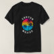 El color es muy bonito al natural, como la foto. El tejido es suave y de buena calidad. Sin defectos en el tintado, ni hilos sueltos o descosidos. Bien la impresión. Los bordes de las letras y el dibujo son nítidos, y el color contrasta muy bien con el de la camiseta.