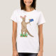 Un canguro que sostiene una bandera australiana. Hay un joey en su bolsa. Se forma como la letra K. Customize para requisitos particulares este producto con un nombre o un mensaje para hacerlo verdaderamente único
