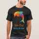 El color es muy bonito al natural, como la foto. El tejido es suave y de buena calidad. Sin defectos en el tintado, ni hilos sueltos o descosidos. Bien la impresión. Los bordes de las letras y el dibujo son nítidos, y el color contrasta muy bien con el de la camiseta.