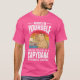 El color es muy bonito al natural, como la foto. El tejido es suave y de buena calidad. Sin defectos en el tintado, ni hilos sueltos o descosidos. Bien la impresión. Los bordes de las letras y el dibujo son nítidos, y el color contrasta muy bien con el de la camiseta.