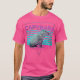 El color es muy bonito al natural, como la foto. El tejido es suave y de buena calidad. Sin defectos en el tintado, ni hilos sueltos o descosidos. Bien la impresión. Los bordes de las letras y el dibujo son nítidos, y el color contrasta muy bien con el de la camiseta.
