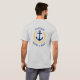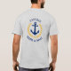 Un personalizado diseñado (frontal y posterior) ancla náutica, hojas de laurel de estilo dorado y una estrella dorada con rango de capitán u otro título y su nombre personalizado o nombre del barco en una camiseta gris. Hace un gran regalo.