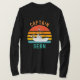 El Capitán Sean presenta un estilo de puesta de sol con ancla de barco y estrellas náuticas.
