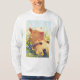 Un capibara de contenido se relaja entre flores silvestres coloridas, disfrutando de la cálida luz del sol con los ojos cerrados y una sonrisa tranquila. El césped y las flores de los alrededores le dan un toque sereno y alegre.