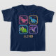 Esta camiseta personalizada de la era de la arcada de los años 90 presenta una pantalla de selección de personajes de dinosaurio audaz con cuatro siluetas de dinosaurios de píxel y chunky. Cada dinosaurio está parado en un marco pixelado angustiado, con efectos de brillo para una vibra nostálgica y retro.