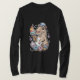 El diseño representa un capibara, un caprichoso ilustracion personalizado, con un gorra morado y una banda blanca. El capibara tiene un cono de helado con tres cucharas coloridas. A su alrededor hay varios dulces, entre ellos donuts con rociadas, quequitos y caramelos redondos o chicles en tonos violetas. El fondo oscuro hace que los colores vivos destaquen. Es un diseño delicioso para los amantes de los capibaras y los dulces