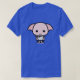 El color es muy bonito al natural, como la foto. El tejido es suave y de buena calidad. Sin defectos en el tintado, ni hilos sueltos o descosidos. Bien la impresión. Los bordes de las letras y el dibujo son nítidos, y el color contrasta muy bien con el de la camiseta.