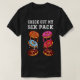 El color es muy bonito al natural, como la foto. El tejido es suave y de buena calidad. Sin defectos en el tintado, ni hilos sueltos o descosidos. Bien la impresión. Los bordes de las letras y el dibujo son nítidos, y el color contrasta muy bien con el de la camiseta.