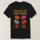 El color es muy bonito al natural, como la foto. El tejido es suave y de buena calidad. Sin defectos en el tintado, ni hilos sueltos o descosidos. Bien la impresión. Los bordes de las letras y el dibujo son nítidos, y el color contrasta muy bien con el de la camiseta.