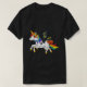 El color es muy bonito al natural, como la foto. El tejido es suave y de buena calidad. Sin defectos en el tintado, ni hilos sueltos o descosidos. Bien la impresión. Los bordes de las letras y el dibujo son nítidos, y el color contrasta muy bien con el de la camiseta.
