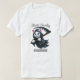 Un diseño simple y lindo de un gato vestido como Parca Grim Reaper, con una pequeña guadaña. El gato tiene una expresión adorable pero maliciosa, con un pequeño manto encapuchado. El texto "Silencio pero Mortífero" está escrito a continuación en una fuente lúdica, agregando humor al diseño.