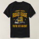 Diseño gráfico único que combina texto áspero en peligro y un gran ilustracion de semi-camión. Incluye la frase "NO TENGO RABIA DE CARRETERA SÓLO ERES UN IDIOTA" en negrita amarilla. Perfecto para entusiastas de camiones y amantes del atrevido y arriesgado arte de declaración.