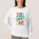 Usa Singapur fuerte. Colores primarios luminosos con superposiciones translúcidas. Grandes letras en bloque.