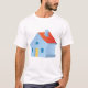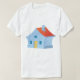 Una bonita casita azul con un techo rojo. Este diseño parece realmente efectivo en esta camiseta de Mens