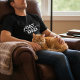 El color es muy bonito al natural, como la foto. El tejido es suave y de buena calidad. Sin defectos en el tintado, ni hilos sueltos o descosidos. Bien la impresión. Los bordes de las letras y el dibujo son nítidos, y el color contrasta muy bien con el de la camiseta.