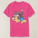 El color es muy bonito al natural, como la foto. El tejido es suave y de buena calidad. Sin defectos en el tintado, ni hilos sueltos o descosidos. Bien la impresión. Los bordes de las letras y el dibujo son nítidos, y el color contrasta muy bien con el de la camiseta.