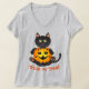 Un gato de Halloween sosteniendo una linterna de Jack-o'-Lantern se curvó como un gato para jugar al truco o tratar. Un regalo lindo y humorístico de Halloween para los amantes de los gatos.
