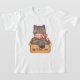 Fluffy grey cat sitting comfortably inside a cardboard box. The txt "If fits, sits" is expressing the cat's innate behavioral rule.