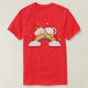 El color es muy bonito al natural, como la foto. El tejido es suave y de buena calidad. Sin defectos en el tintado, ni hilos sueltos o descosidos. Bien la impresión. Los bordes de las letras y el dibujo son nítidos, y el color contrasta muy bien con el de la camiseta.