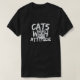 a stylized cat with sunglasses, displaying a confident and relaxed attitude, positioned in the center. Above and around the cat, the text “CATS WITH ATTITUDE” is written in a large, painted font, with a slightly faded and marked appearance, giving it a cool and bold touch. The background is black, highlighting the contrast of the white design. The design conveys a fun and cool vibe, with the cat representing a personality full of attitude, typical of iconic cats who always seem to be in control.