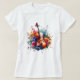 Arte acuarela ai que representa un chelo rodeado de bonitas flores rojas, azules y naranjas y arte botánico follaje.