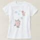 Un cerdo adorable está mirando hacia arriba a un cerdo que sopla en el cielo sosteniendo un globo cardíaco. Envíe un piropo a alguien que pueda estar sintiéndose mal o enfermo. Sencillo fondo de patrón en el cielo y la hierba con los cerdos añaden un poco de brillo a este regalo de hola.