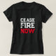 Cesen Fire Now con camisetas antibélicas en forma de tipografía grunge en rojo blanco angustiado. Tipografía atrevida en blanco y rojo angustiada sobre fondo negro. Conflicto entre Oriente Medio y Gaza.
