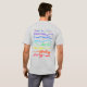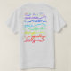 La ropa de la camiseta muestra las palabras "ligero amor UNO". Refiere que todos somos creados a partir de la misma fuente de luz y amor del espíritu en el mundo. Estas declaraciones se pueden personalizar con sus propios mensajes de concienciación personal. El arte proviene de una serie de "One Light, One Love". Las palabras "light ONE love" están en colores arcoiris para reflejar todos los colores chakra. Individualmente, las diferentes palabras coloreadas de los centros de energía de chakra son "conciencia" (violeta), "visión" (añil), "voz" (azul claro), "corazón" (verde), "pensamiento" (amarillo), "sentimiento" (naranja) y "ser" (rojo). ¡Esta camisa personalizado puede ser personalizada con sus propias opciones para hacer regalos de arte o mecánica personalizados de conciencia espiritual!