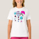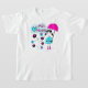 ¡Chicas de cada edad que aman charcos de fango y la lluvia amará este diseño lindo y colorido del doodle que ofrece a un chica en un impermeable azul verde azulado y botas y un paraguas rosados, una nube de lluvia, árbol de la flor una audición para mostrarle charcos de fango del amor!