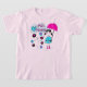 ¡Chicas de cada edad que aman charcos de fango y la lluvia amará este diseño lindo y colorido del doodle que ofrece a un chica en un impermeable azul verde azulado y botas y un paraguas rosados, una nube de lluvia, árbol de la flor una audición para mostrarle charcos de fango del amor!